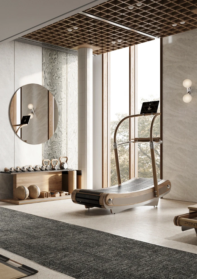 Every detail, from layout to material selection and lighting plan, is customized to suit the client’s lifestyle and preferences. Based on the concept of Interior Fitness embodied by PENT., we propose sophisticated wellness spaces that feature the world’s most beautiful fitness equipment.